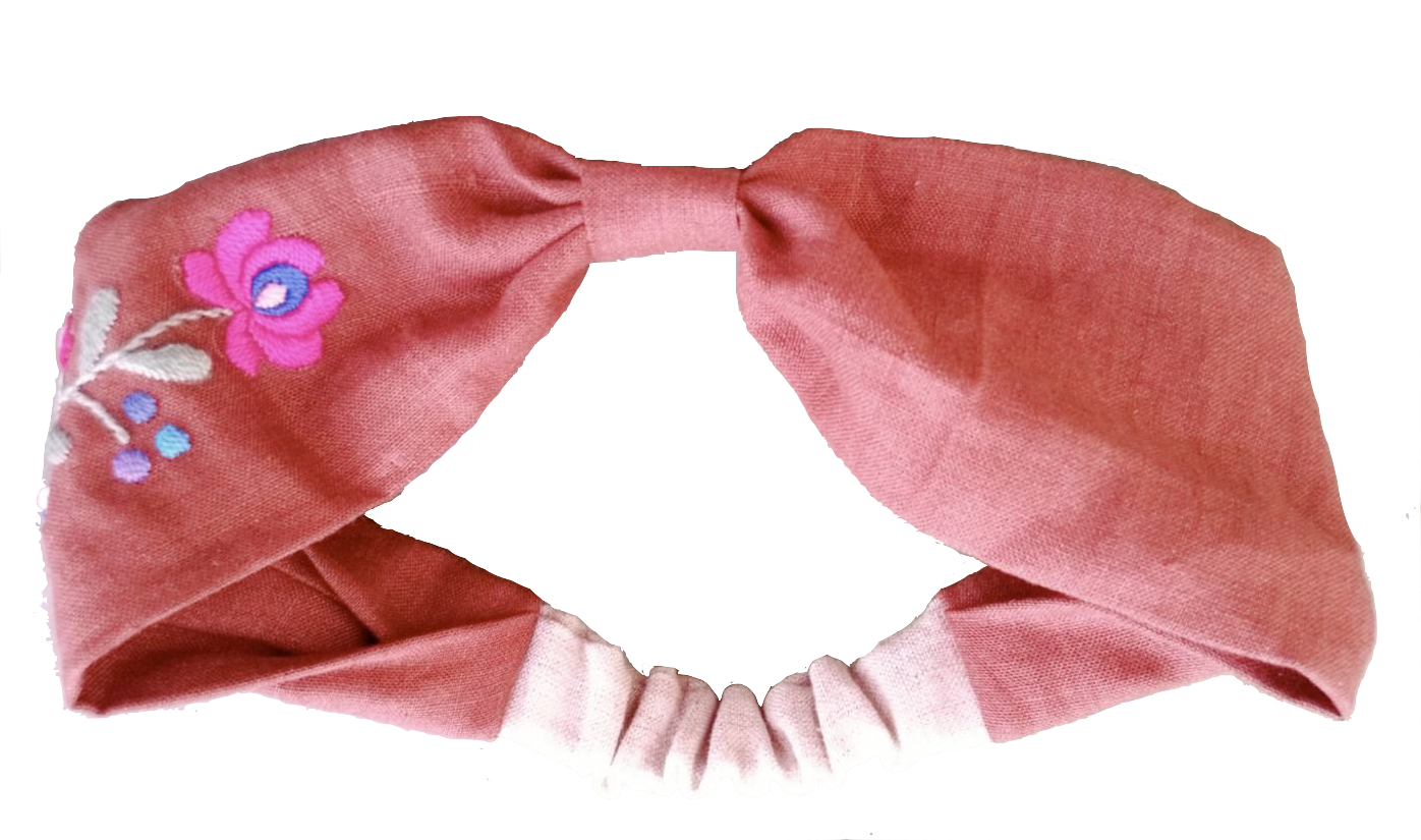 ハンガリーの『カロチャ刺繍』の手法で刺繍を施したリネンのヘアバンドです。