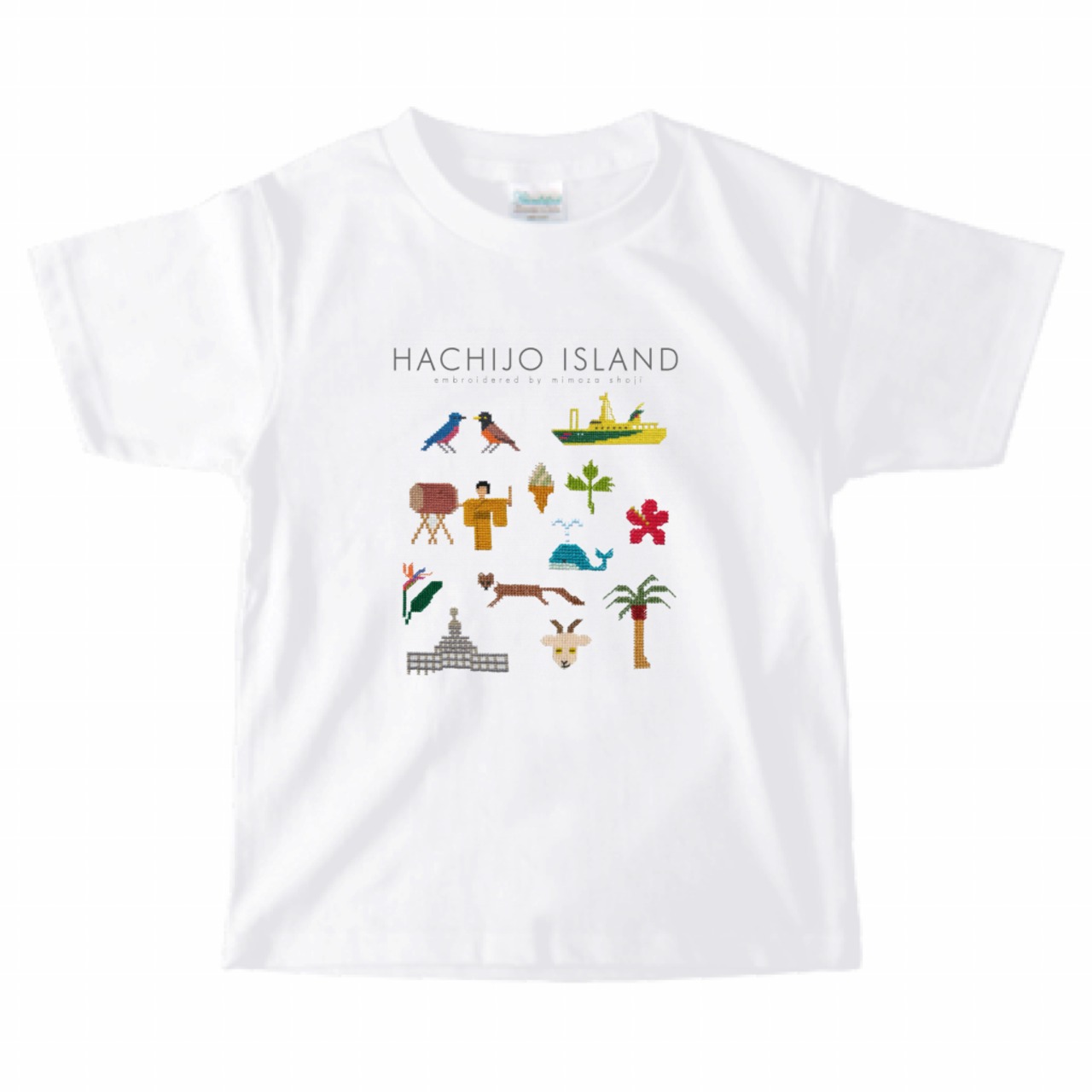 八丈島のモチーフをクロスステッチで刺繍し、Tシャツにプリントしました!